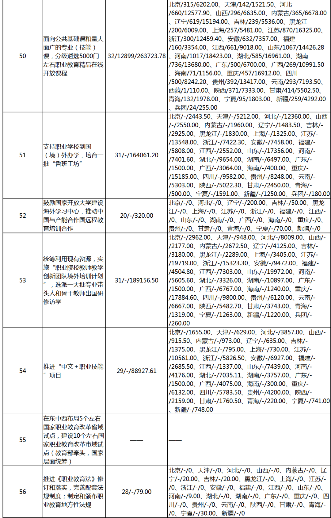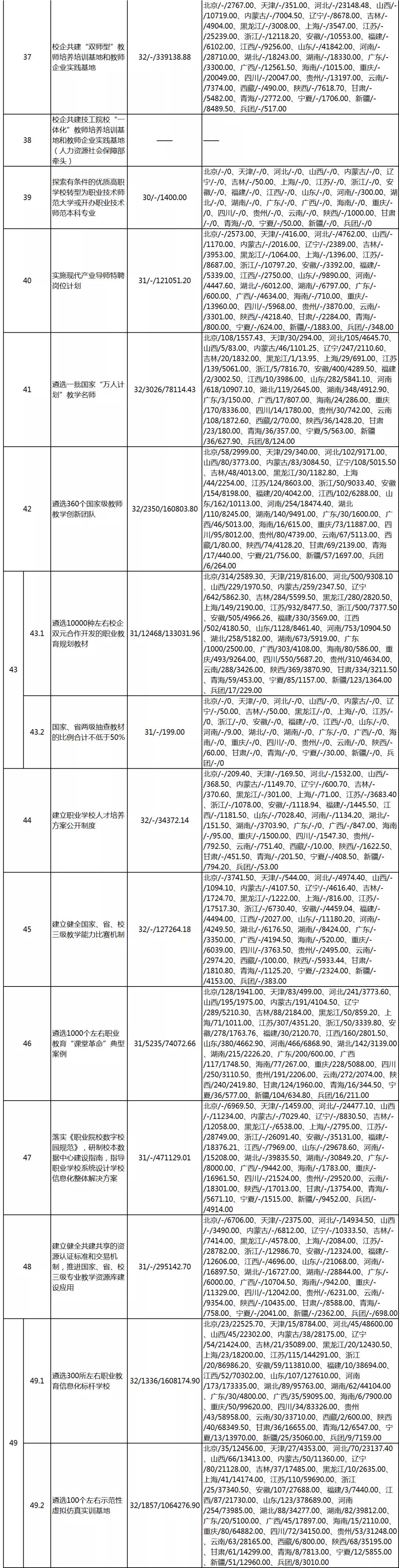 職業(yè)教育 提質培優 1月(yuè)14日,教育部職業(yè)教育與成人教育司發布《職業(yè)教育提質培優行動計劃(2020—2023年(nián))》任務(項目)承接情況的通(tōng)知,根據《關于承接〈職業(yè)教育提質培優行動計劃(2020—2023年(nián))〉任務(項目)的通(tōng)知》(教職成司函〔2020〕32号)要求,各省級教育行政部門(mén)積極組織申報(bào),确定了本地拟承接的任務(項目)數量、承接單位和支持經費(fèi)。 統計數據顯示,32個(gè)省份(含新疆生(shēng)産建設兵團)預計總投入經費(fèi)共計3074.53億元。經費(fèi)來源包括學校自(zì)籌、行業(yè)企業(yè)投入、舉辦方投入、地市(shì)縣投入、省财政投入五部分,其中,學校自(zì)籌預計投入1198.49億元、行業(yè)企業(yè)預計投入281.63億元、舉辦方(非财政供養的舉辦方)預計投入193.97億元、地市(shì)縣級财政預計投入985.04億元、省級财政預計投入415.40億元。 從(cóng)各省經費(fèi)投入情況來看(kàn),共有13個(gè)省份預計經費(fèi)總投入突破百億大關,預計投入經費(fèi)最高(gāo)的5個(gè)省份分别是:山東(2822102.28萬元)、四川(2419348.7萬元)、江蘇(2252110.25萬元)、河南(nán)(2072872.02萬元)、安徽(2054593.82萬元)。 附通(tōng)知原文: 關于公布《職業(yè)教育提質培優行動計劃(2020—2023年(nián))》任務(項目)承接情況的通(tōng)知 教職成司函〔2021〕1号 各省、自(zì)治區、直轄市(shì)教育廳(教委),新疆生(shēng)産建設兵團教育局,有關單位: 根據《關于承接〈職業(yè)教育提質培優行動計劃(2020—2023年(nián))〉任務(項目)的通(tōng)知》(教職成司函〔2020〕32号)要求,各省級教育行政部門(mén)積極組織申報(bào),确定了本地拟承接的任務(項目)數量、承接單位和支持經費(fèi)。現将各地承接情況予以公布,詳見(jiàn)附件(jiàn)1、附件(jiàn)2。建設期内,各地承接的任務(項目)原則上(shàng)不作調整,确需調整的須由省級教育行政部門(mén)函報(bào)我司備案。 2021年(nián)起,各地須在每年(nián)12月(yuè)31日前,按照(zhào)有關要求在“職業(yè)教育提質培優行動計劃任務(項目)管理平台”填報(bào)年(nián)度工(gōng)作進展及相(xiàng)關績效數據。我部對各地執行情況開(kāi)展評價,适時發布績效評價報(bào)告,并作為(wèi)考核省級政府履行教育職責和遴選國(guó)家新一(yī)輪重大改革試點項目的重要參考。2024年(nián)初,我部将根據各地建設成效,對任務(項目)開(kāi)展綜合評價,并對有關項目進行認定。 請各地将《職業(yè)教育提質培優行動計劃(2020—2023年(nián))》與“十四五”事(shì)業(yè)發展同規劃、同部署、同考核,加強省級統籌,加大政策和資金保障,指導各承接單位積極開(kāi)展建設工(gōng)作,确保承接任務(項目)落地見(jiàn)效。 附件(jiàn):1.分省承接任務(項目)數量彙總表 2.分任務(項目)承接省份一(yī)覽表 教育部職業(yè)教育與成人教育司 2021年(nián)1月(yuè)5日