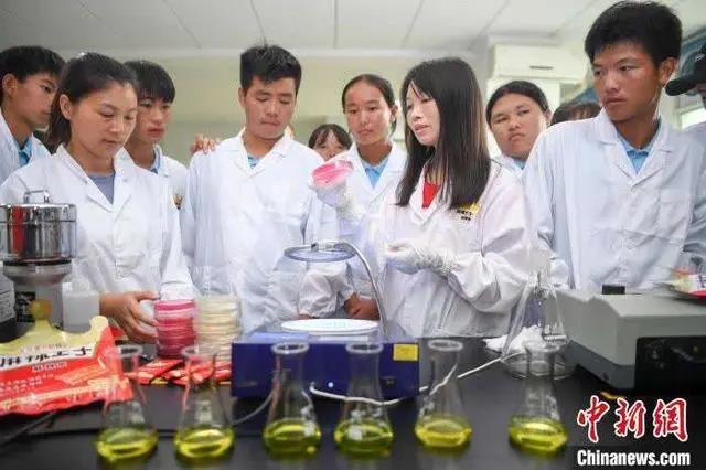 老師(shī)手持培養皿教學生(shēng)觀察辣條菌落。(上(shàng)圖皆為(wèi)楊華峰 攝)