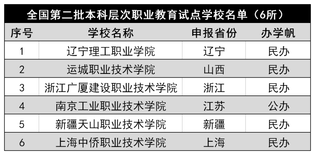 1月(yuè)19日,教育部正式發布通(tōng)知同意第二批6所高(gāo)職院校升格為(wèi)本科層次職業(yè)學校。具體通(tōng)知如下(xià)(排名不分先後):