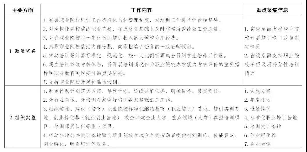 各職業(yè)院校每年(nián)年(nián)底前要對當年(nián)開(kāi)展職業(yè)培訓的總體情況、機(jī)構設置、培訓項目實施、資源開(kāi)發、培訓成效及社會(huì)影響等方面進行總結,形成年(nián)度報(bào)告或在學校質量年(nián)度報(bào)告中設置職業(yè)培訓專章向社會(huì)公布。各省級教育行政部門(mén)要做好本地職業(yè)院校開(kāi)展職業(yè)培訓工(gōng)作的總結,每年(nián)定期發布進展情況。我司将彙總整理各地落實方案和年(nián)度計劃、進展情況,組織專委會(huì)編制和發布全國(guó)職業(yè)院校開(kāi)展職業(yè)培訓情況年(nián)度報(bào)告。